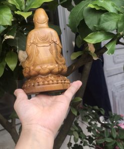 Tượng Quan Âm ngự đài sen gỗ bách xanh