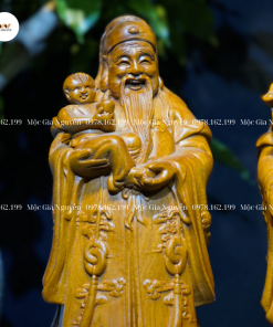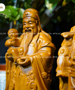 - Phúc: Tượng Phúc biểu thị cho hạnh phúc gia đình, con cháu đông đủ và niềm vui trọn vẹn. Hình ảnh ông Phúc thường đi kèm với một đứa trẻ, tượng trưng cho sự sung túc và ấm áp trong gia đình.