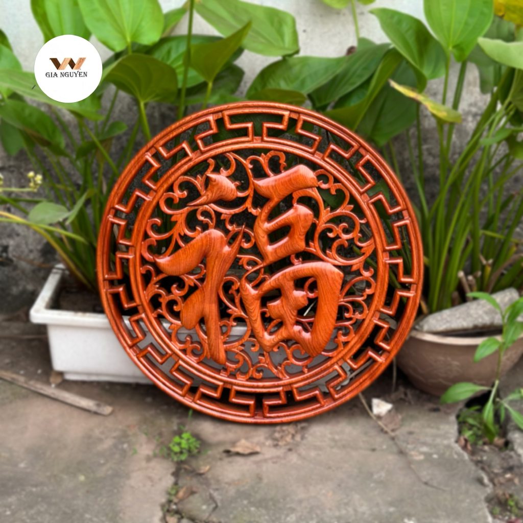 Tranh chữ Phúc bằng gỗ thường được đặt ở vị trí trung tâm: phòng khách, phòng thờ, sảnh lớn – thể hiện khát vọng sống an lạc, đức hậu.